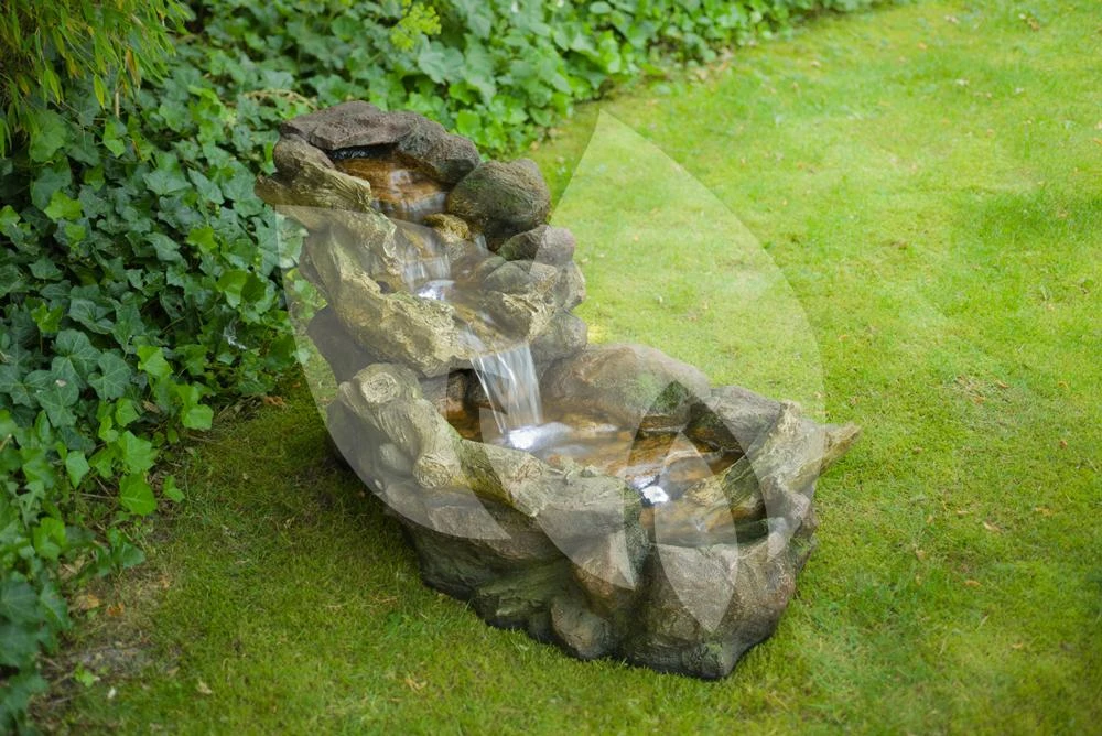 Een natuurgetrouw tafereel van boomstammen met stenen, een prachtige toevoeging aan uw tuin! Het waterornament is voorzien van ledverlichting waardoor het ook ’s avonds een absolute sfeervolle blikvanger zal zijn in uw tuin. Stromend water in de vrije natuur was de inspiratiebron voor het ontwerp van dit prachtige ornament.