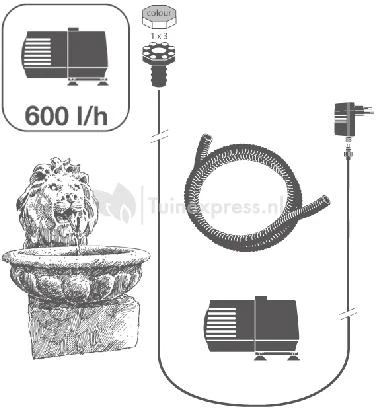 - Capaciteit pomp per uur: 600 l/h