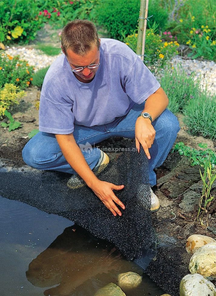 Na het aanleggen van de vijver kunt u verder naar de volgende stap: oeverafwerking. Voor een natuurlijke samenhang tussen uw vijver en de tuin is deze begroeiingsmat een uitstekende optie! Een begroeiingsmat is de ideale ondergrond voor uw oeverplanten. Door de structuur van de begroeiingsmat kunnen de wortels van de oeverplanten zich goed hechten aan de oever van de vijver. Een stevige oever is gegarandeerd!