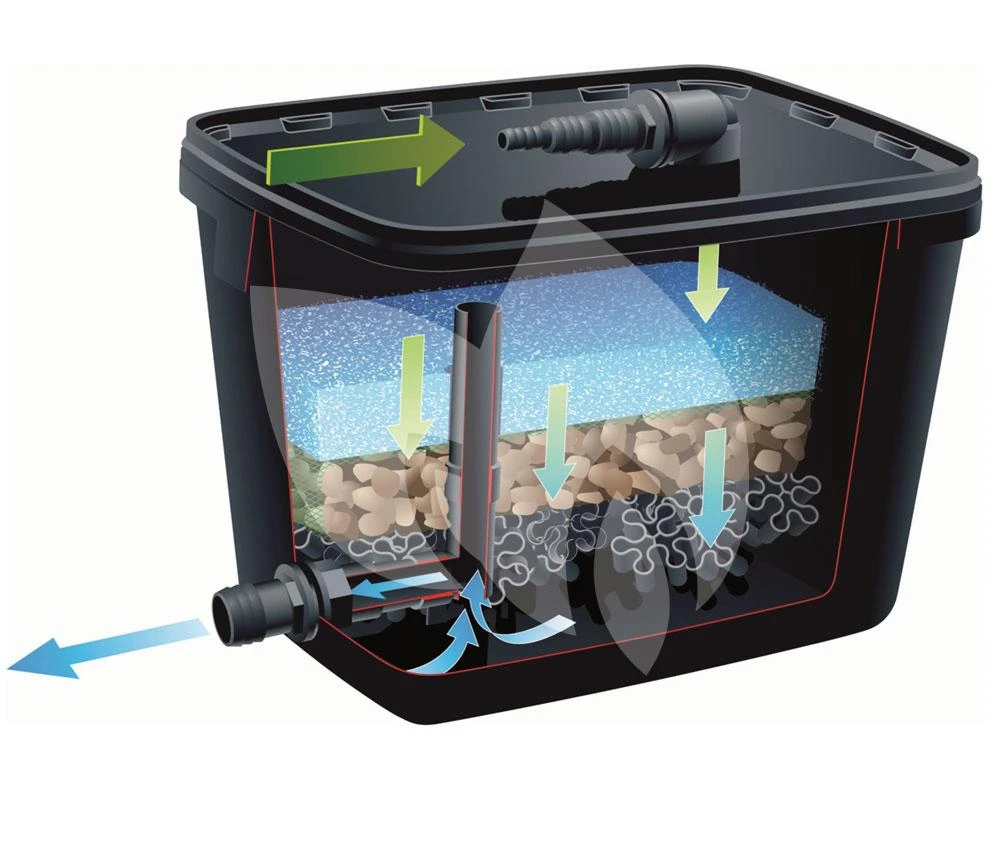 - Aanbevolen pomp: 1500-1600 liter per uur