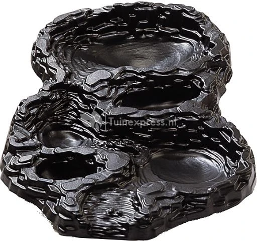 De Standaard-serie bestaat in totaal uit zes onderling te combineren elementen waarmee u eindeloos kunt variëren. Net als de hele Standaard-serie is dit rechte element vervaardigd uit polyethyleen in een zwarte kleur. Het grote rechte model is UV- en vorst bestendig en vervaardigd door middel van rotatievorming, wat zorgt voor een juiste stabiliteit en een sterke constructie. Dankzij zijn vorm heeft het element de uitstraling van een natuurlijk rotsgesteente gekregen. Voor het samenstellen van de waterval geheel naar uw wensen, kunt u het grote rechte element combineren met een klein recht element, een hoekelement met een bocht naar links of naar rechts en een beekloopelement. Voor ieder mogelijke combinatie dient u altijd te beginnen met een startelement.